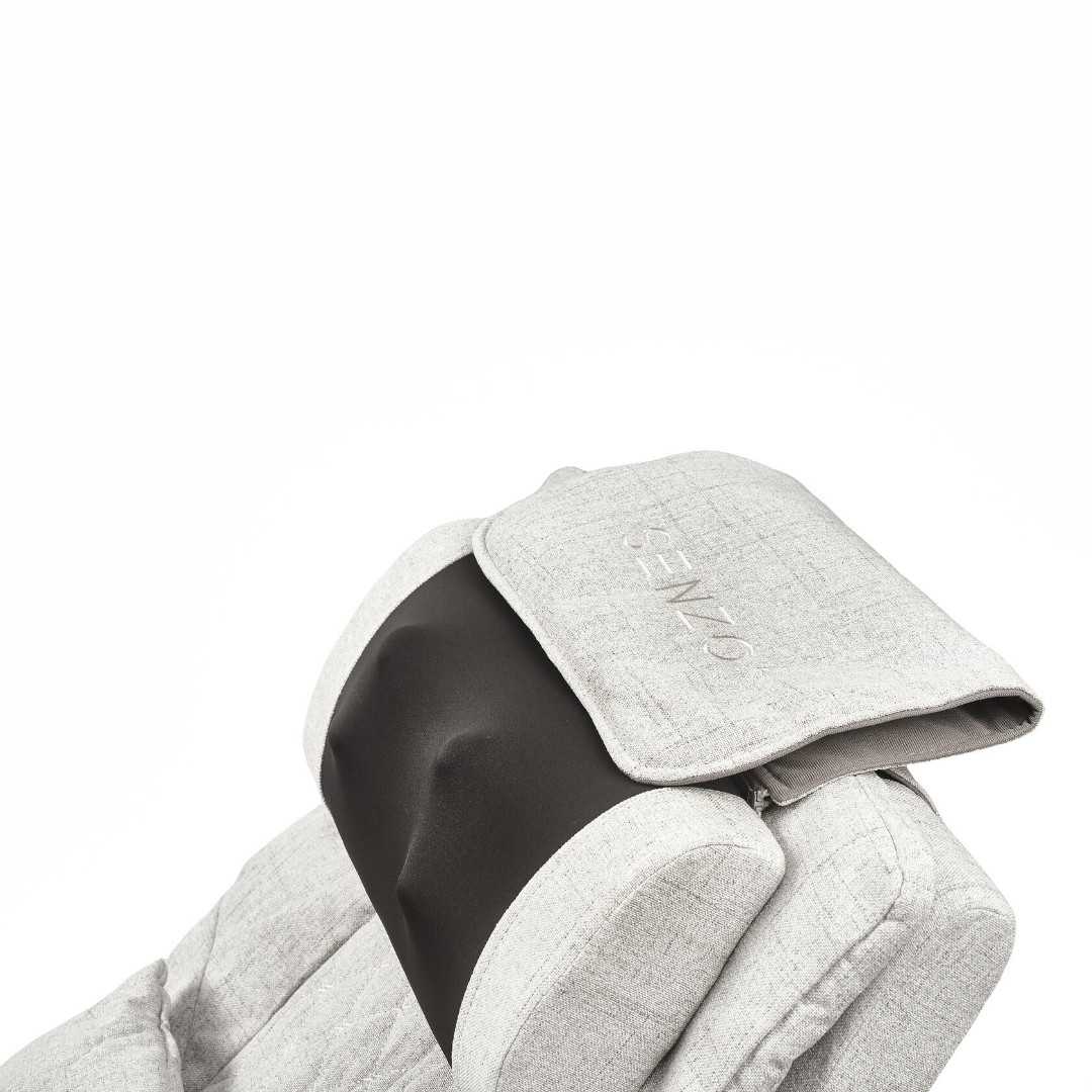 - Массажная подушка в области шеи легко регулируется по высоте с помощью застежки-липучки на обратной стороне кресла.
