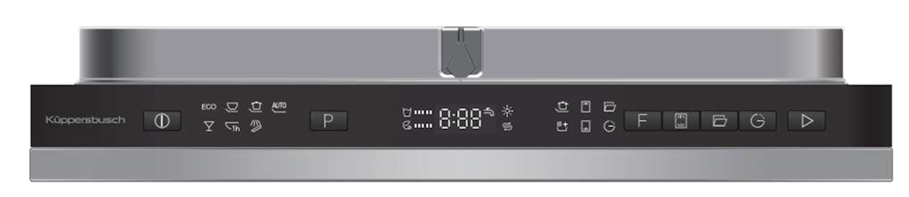 Панель управления посудомоечной машиной расположена сверху двери внутри прибора. Во время работы интегрированных посудомоечных машин не всегда точно ясно, на каком этапе выполнения программы находится прибор. При помощи нового сигнала "Beam on floor", – красной точки, отражающейся на полу, – Вы сразу узнаете, закончился процесс мытья или нет. Мигающий сигнал указывает на неполадки.