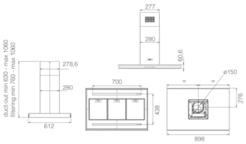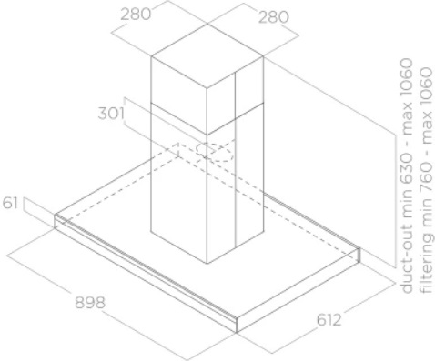 Передняя панель из черного стекла в алюминиевой рамке подчеркивает строгие прямые линии данного изделия. Прибором можно управлять дистанционно, через приложение или с помощью голосового помощника, а также подключить его через Bluetooth к индукционной варочной панели Elica, регулируя мощность аспирации в зависимости от активированных зон приготовления. Вытяжка обладает превосходной производительностью: она способна очищать до 770 м³ воздуха в час на максимальной скорости. Сенсорное управление скрыто за стеклом, а светодиоды с низким уровнем энергопотребления отлично освещают варочную поверхность.