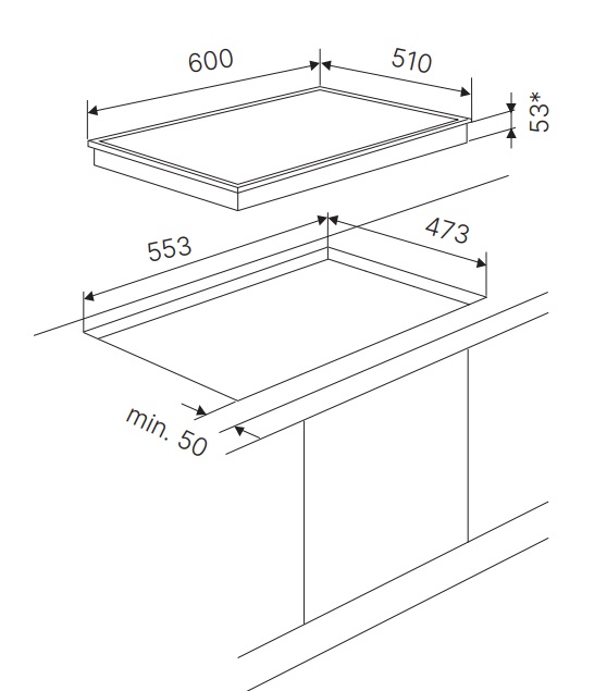 - Габариты ВхШхГ, мм: 53х600х510