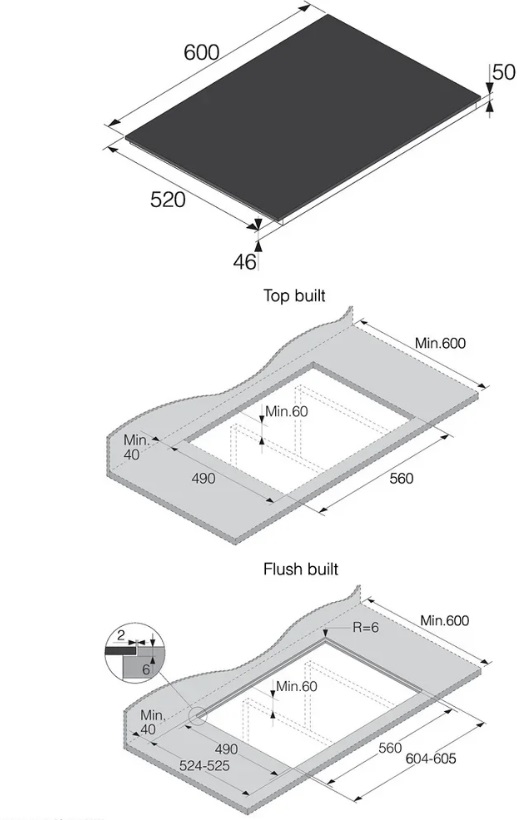 - В варочных панелях на скрытой части, которая находится под столешницей