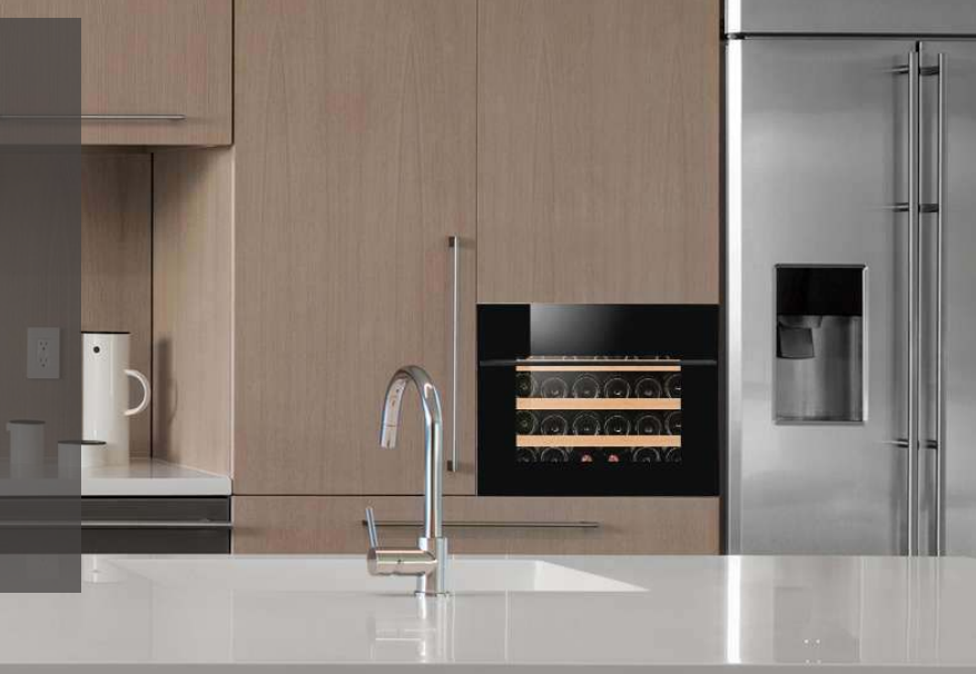- Реверсивная дверь, которая позволяет устанавливать два винных шкафа рядом;
